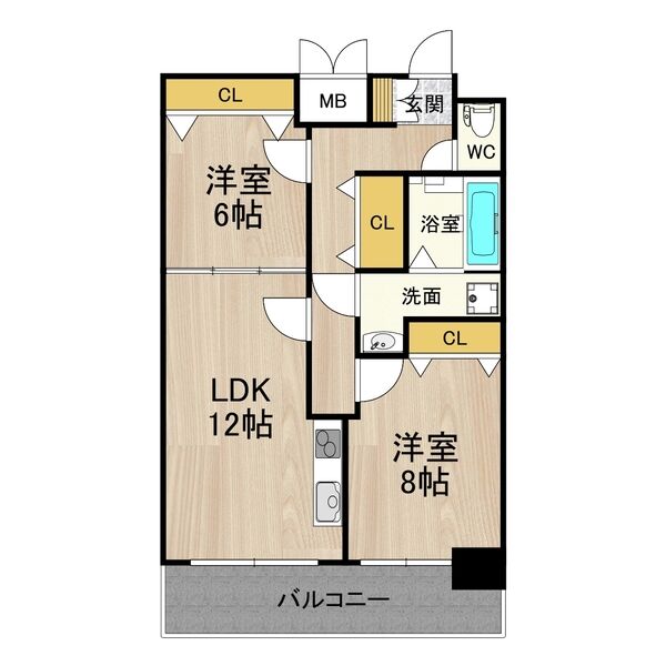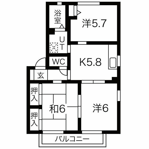 2つの居室とDK(ダイニング・キッチン)で構成される間取りです。